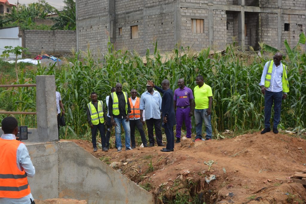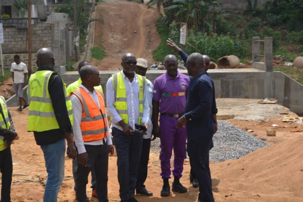 Accompagné de plusieurs de ses collaborateurs notamment le Conseiller Municipal Alphonso BIPA, le Chef service Technique, Allin ESSOMBA, le Chef service de l’Assainissement, Christophe NTSA, le Chef de la cellule des Projets, Christian OLEME, et le Responsable en charge de la Police Municipale, Jean-claude ABE, Le Maire Jean Marie ABOUNA a pu apprécier le niveau d’avancement des travaux de construction du dalot sur la rivière Man Ossoe au quartier Nkolmbong entamés le 28 avril dernier.